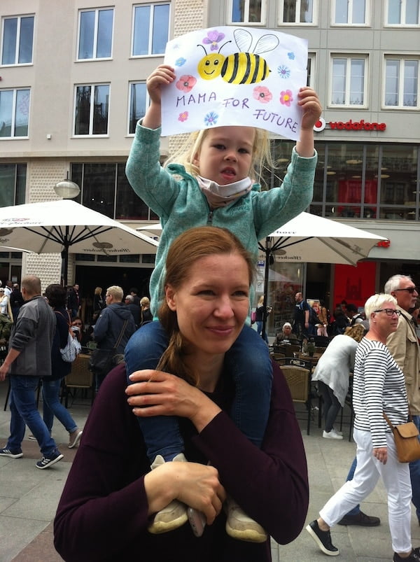 El penúltimo día realizamos compras por el centro. Destacar, entre ellas, un libro de guitarra clásica, poco conocido, de Johann Sebastian Bach, que mi hermano se agenció. Circundamos toda la plaza y miramos con curiosidad una manifestación que se repite frecuentemente para concienciar a los ciudadanos ante el cambio climático. Nos desviamos para tomar café en una plazoleta minúscula y peatonal.